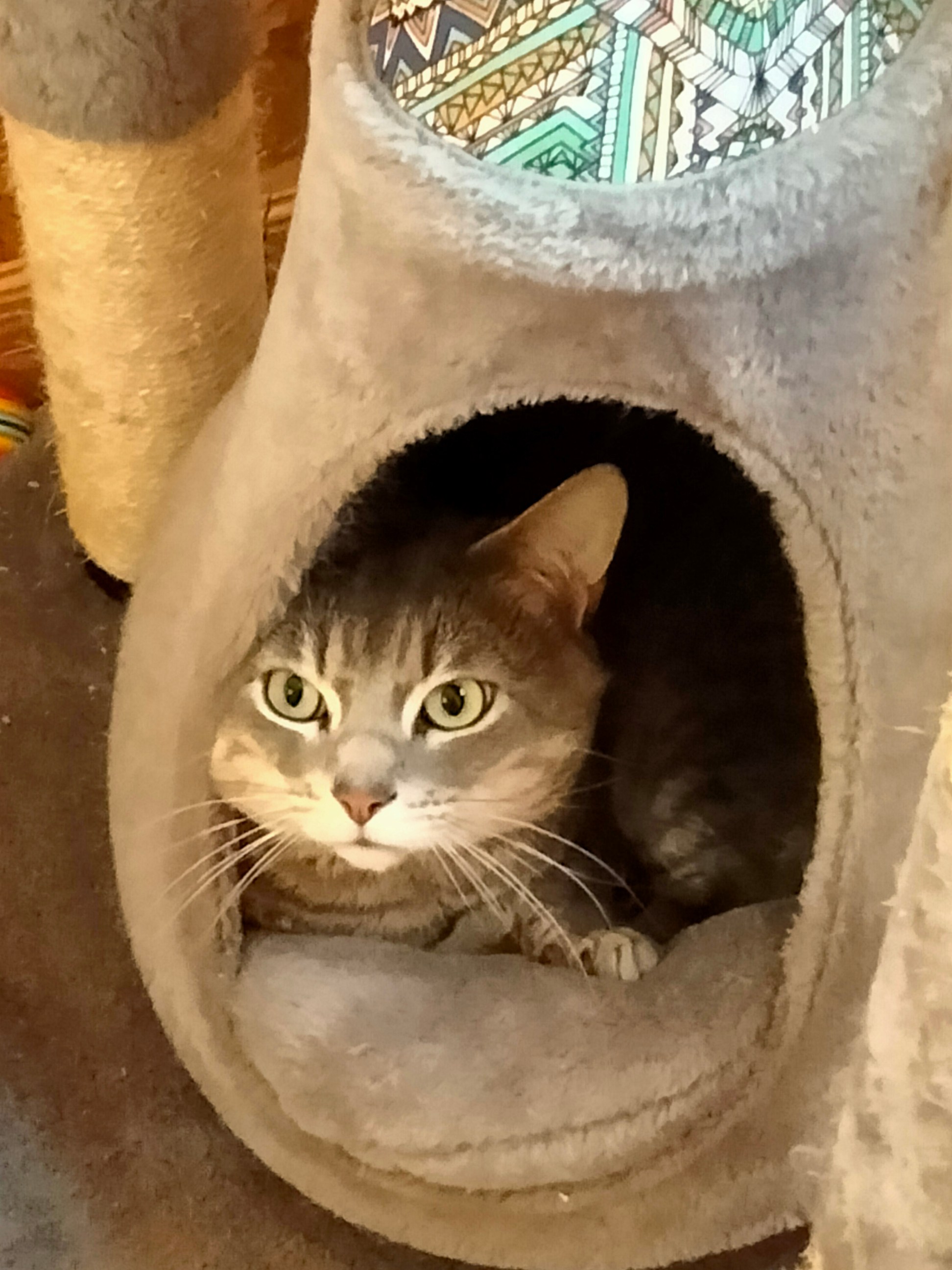 Grâce à la pension, mon chat a plus peur des chiens en laisse et des aboiements. De plus, il a perdu du poids du fait des postes en hauteur qui lui ont permis de faire de l'exercice. A l'entrée, il pesait 7,8 kgs. Très satisfaite.